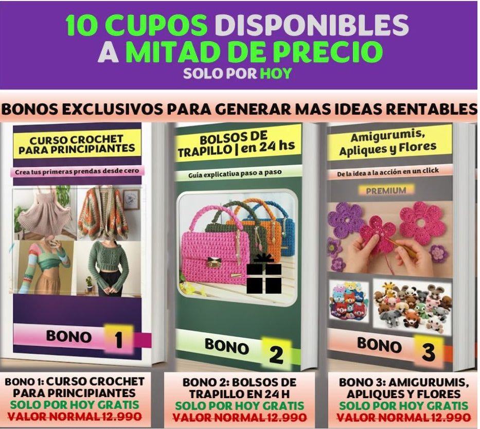 📓Soy Crochet +5000 Patrones, Tutoriales + 🎁3 Bonus